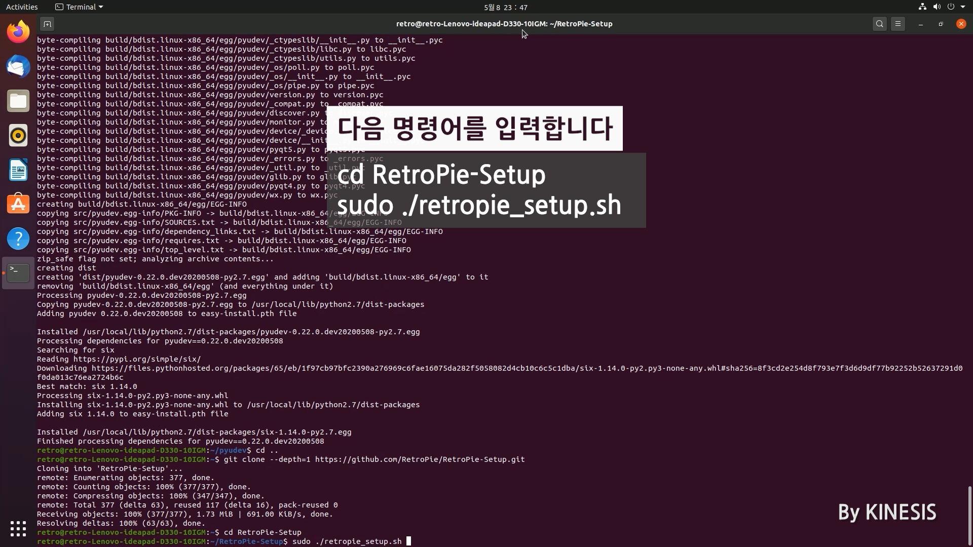 다음 명령어를 입력하여 RetroPie 설치를 위한 스크립트를 실행합니다.