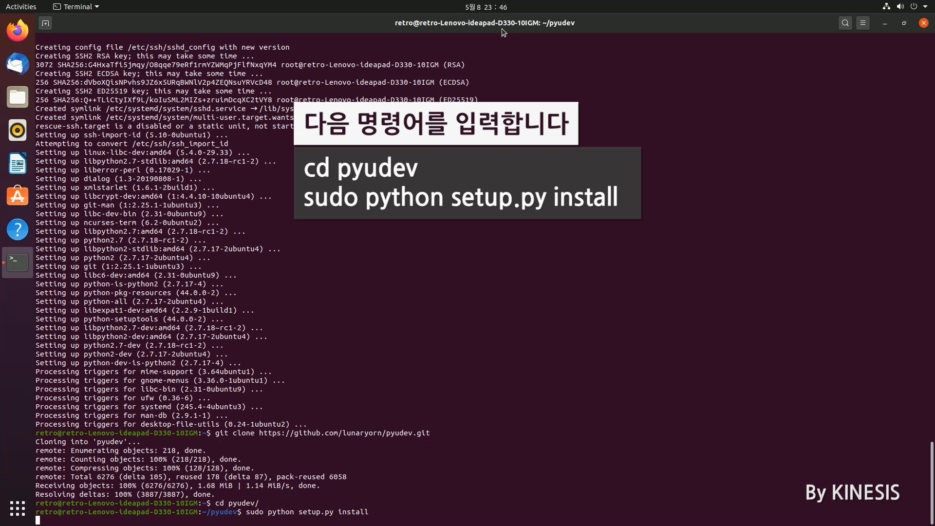 다음 명령어를 입력하여 pyudev 모듈을 설치해줍니다.