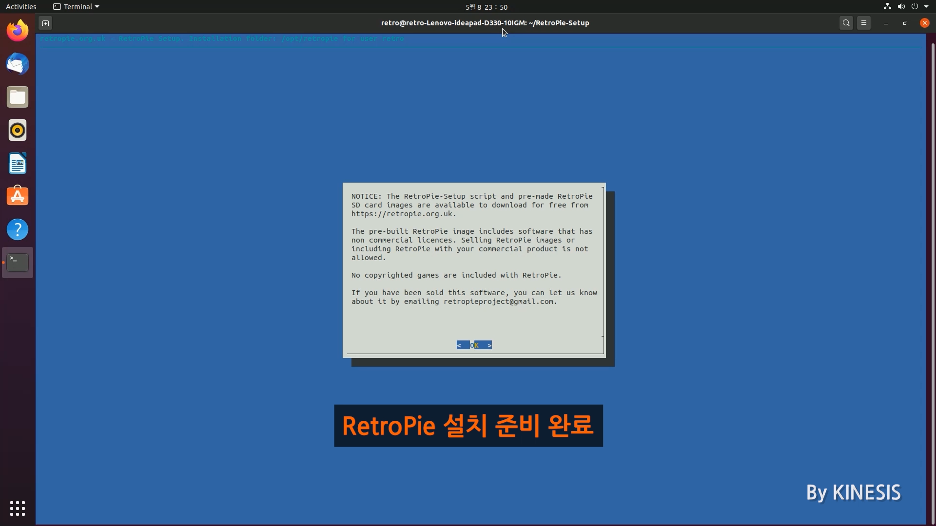 RetroPie 설치를 위한 준비가 완료되었습니다.
