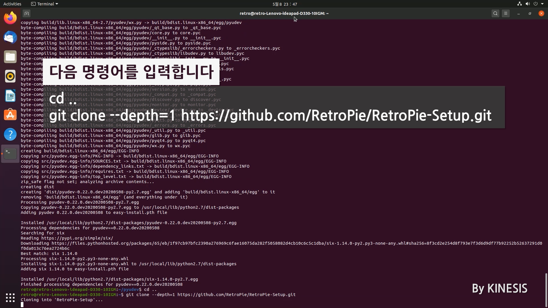 다음 명령어를 입력하여 RetroPie 설치를 위한 Source 를 다운로드 받습니다.