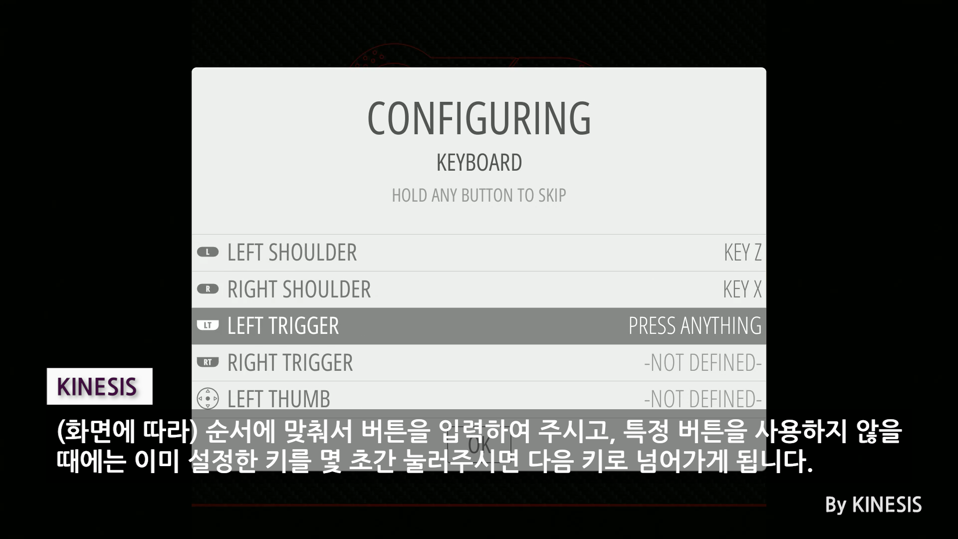 (화면에 보이는 키 이미지를 참고해서) 순서에 맞춰 버튼을 입력하여 주시고, 버튼이 모자라거나 또는 사용하지 않을 키에 대해서는 이미 설정한 키를 몇 초간 눌러서 스킵하고 다음 키 설정으로 넘어갑니다. (모든 키가 설정되면 OK를 선택해주시면 됩니다.)