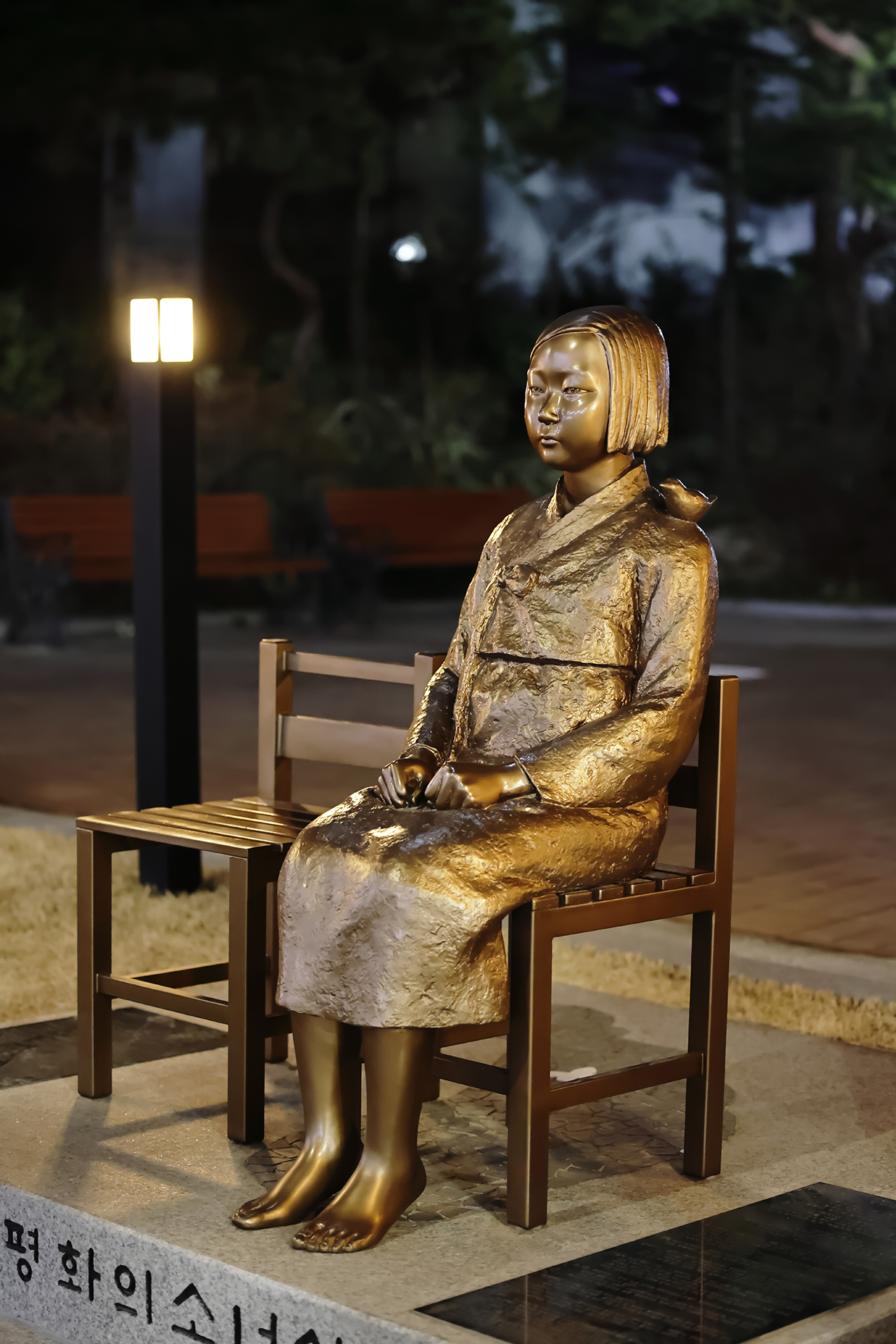 일본군 "위안부" 피해자들을 기리기 위한 "평화의 소녀상". 역사를 부정하고 싶어하는 일본과, 역사를 알리고자 하는 대한민국과 중국, 대만, 필리핀, 네덜란드, 인도네시아는 현재 진행형인 것 같다.